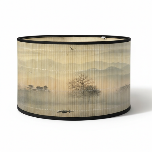 Abat Jour Bambou – Tambour Motifs Vagues Vertes -